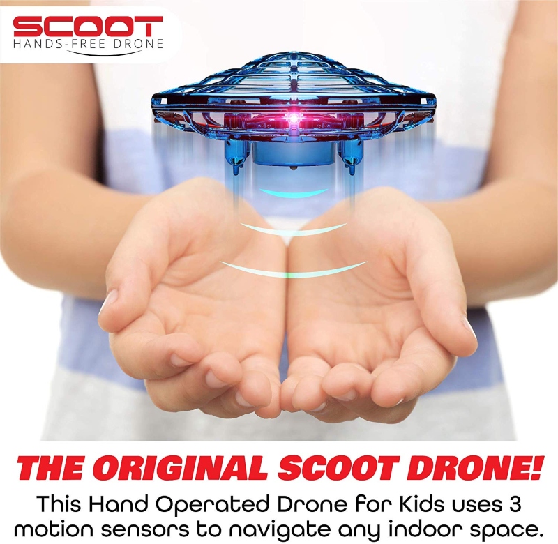 The Scoot Mini Drone features advanced hands-free operation which makes it a great drone for all ages. With an enclosed frame and infrared obstacle sensors, it is also safe for use in any indoor space.