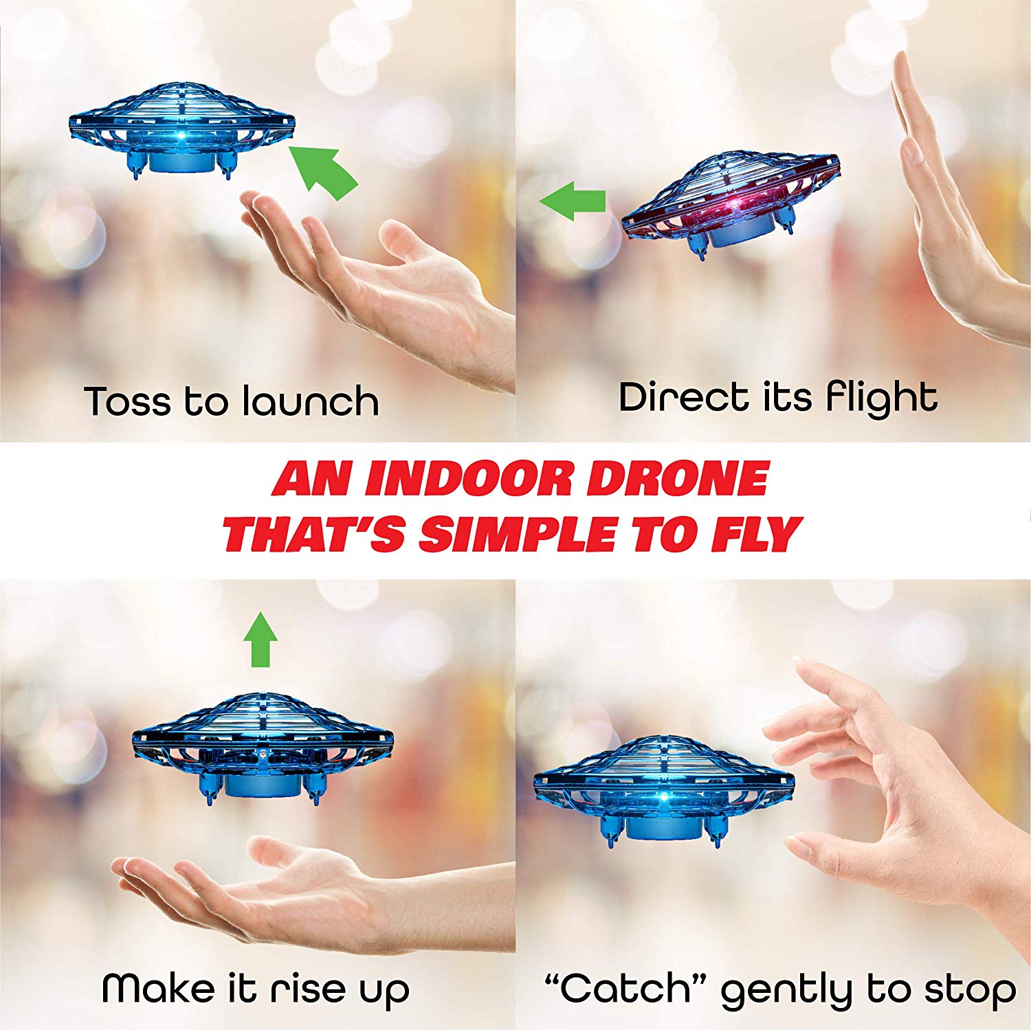 With an enclosed frame and infrared obstacle sensors, the [easyazon_link identifier=”B07CVFWVF5″ locale=”US” tag=”uavcoach-20″]Scoot Mini Drone[/easyazon_link] is safe for use indoors and comes with a USB charging cord, making it easy to charge anywhere.