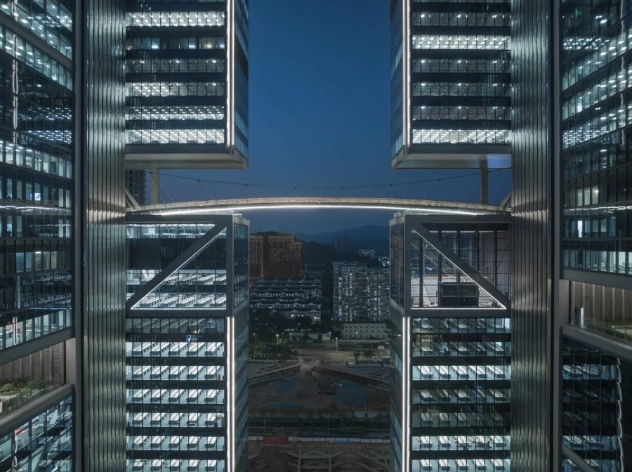 The towers unite DJI employees who have been scattered among several Shenzhen buildings during the company’s rapid growth, bringing them into a purpose-built structure that puts physical form to the company’s name, Da-Jiang Innovations.