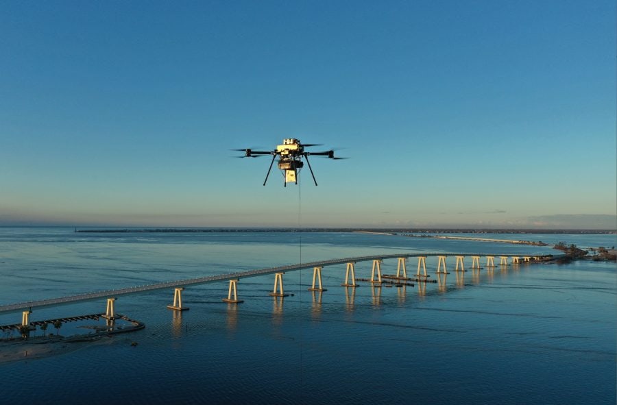 A Verizon drone flying over Sanibel Island following Hurricane Ian | Credit: Verizon