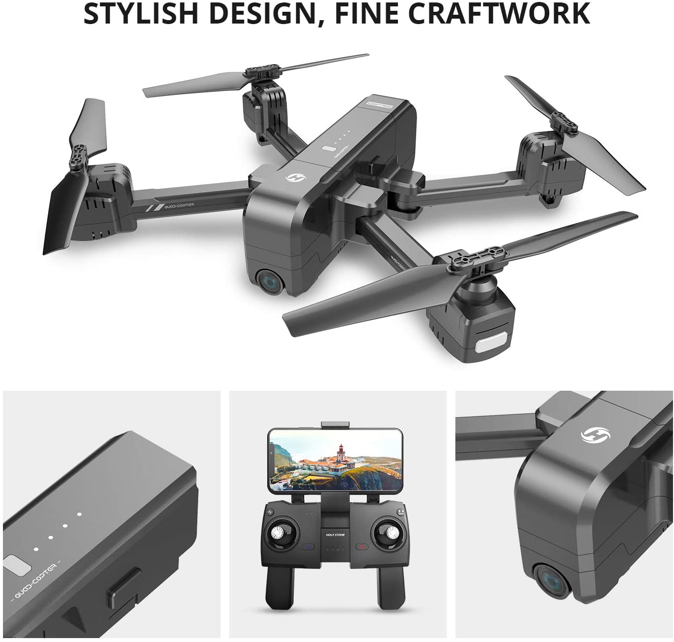 The [easyazon_link identifier=”B07RGQ8C25″ locale=”US” tag=”uavcoach-20″]Holy Stone 2.7K [/easyazon_link] GPS drone proves that you do not have to drop hundreds of dollars for a great starter drone. The 2.7k camera system features 5G image transmission, ensuring crisp pictures every time. The included follow-me, tap fly, and point of interest modes allow you to capture cinematic footage or even capture a selfie.
